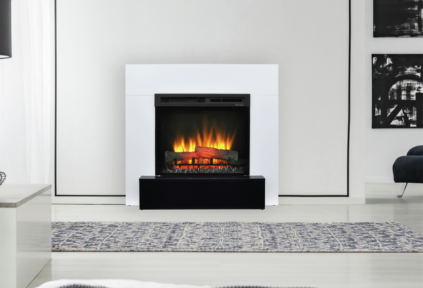 Tijdloze witte haard. Optiflame®, verwarming, afstandsbediening. Plug-and-play.